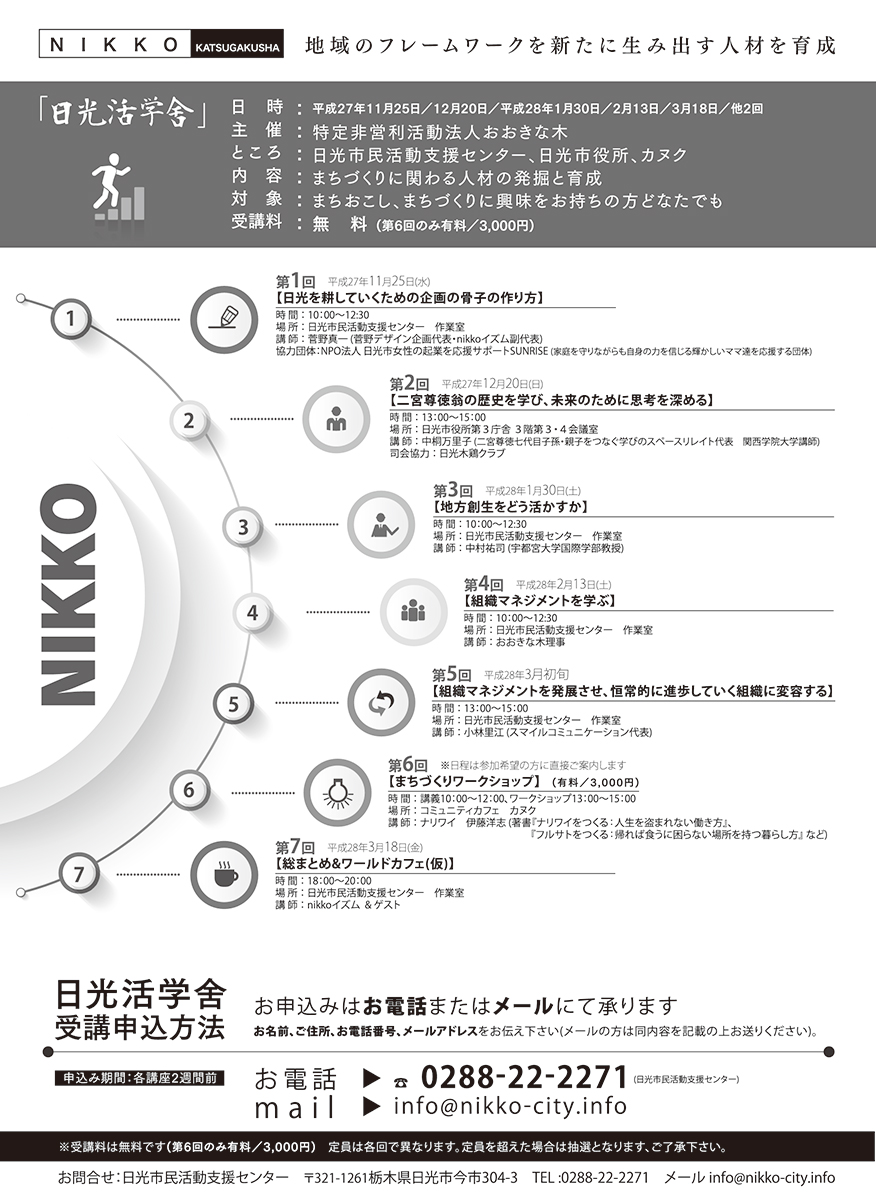 日光市地域リーダー育成事業「日光活学舎」で講師を務めることになりました。