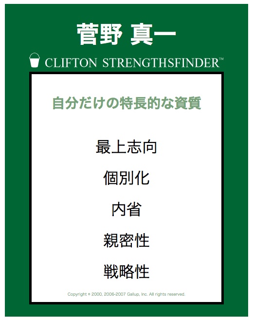 友人に勧められて「ストレングスファインダー」というテストを受けました。