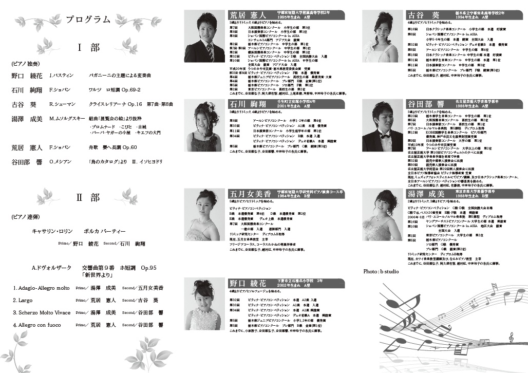 4/16(土) 宇都宮市文化会館小ホール、ピアノコンサート、プログラム